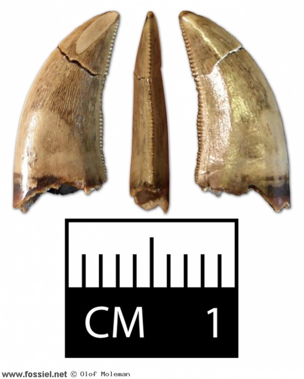 Tand van een raptor. Identiek aan Saurornitholestes.
