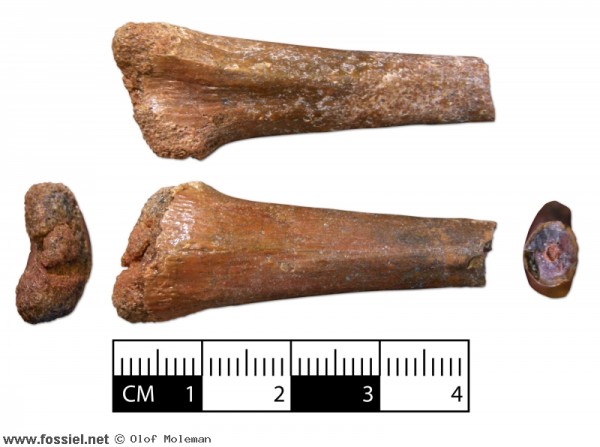 Halve tibia van een Theropode dinosaurus.