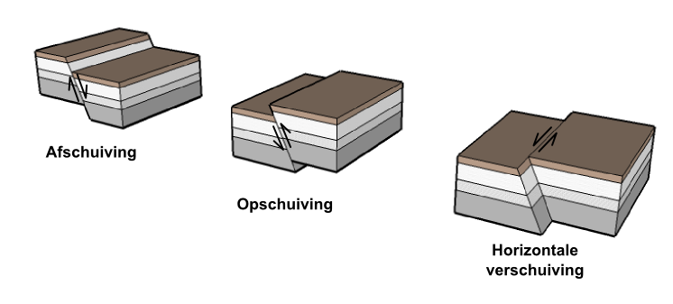 Een breuk in een zone in gesteente waarlangs verplaatsing heeft plaatsgevonden. Door tektoniek kan er door te hoog oplopende druk een breuk in het gesteente ontstaan. Er zijn drie soorten breuken. Bij een afschuiving is door rek een gedeelte naar beneden geschoven. Bij een opschuiving is door druk een gedeelte omhoog geschoven. Langs een breuk kan ook nog horizontale verplaatsing hebben plaatsgevonden. Door de vaak grote wrijving op breukvlakken vindt verplaatsing meestal niet gelijdelijk, maar schoksgewijs plaats. Hierdoor ontstaan aardbevingen.