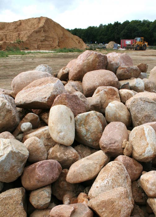 Deze zwerfstenen zijn naar boven gekomen in een zandgroeve in Emmen. De stenen zijn afgerond door het landijs. Foto: Tom Koops