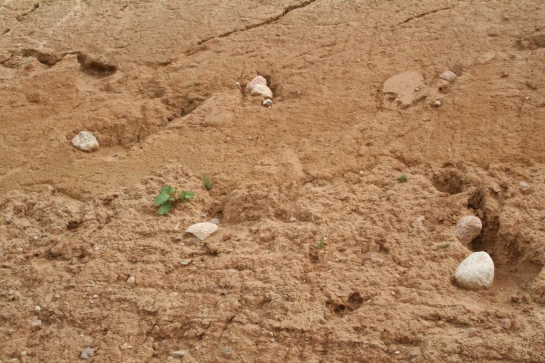 Keileemafzetting in Emmen. Het is goed te zien aan de zwerfstenen dat deze afzetting zeer slecht gesorteerd is.