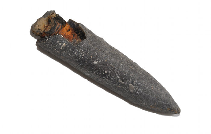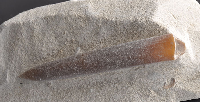 Belemniet met deel van het phragmocoon op de oorspronkelijke plaats.