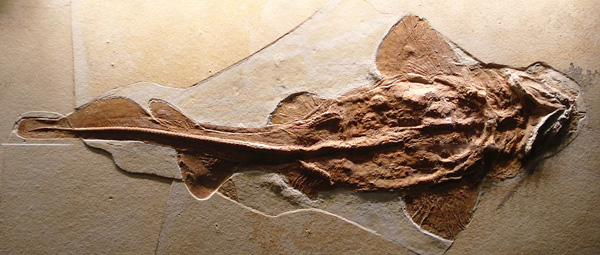 Goed bewaarde kraakbeenvis uit de lithografische kalksteen van Solnhofen