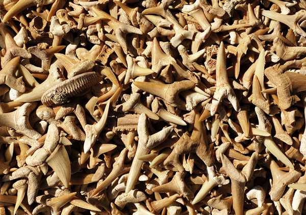 Fossiele tanden en tandplaten van kraakbeenvissen