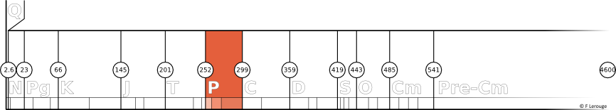 Het Perm is een geologisch tijdperk dat duurde van 299 tot 252 miljoen jaar geleden. Verdere ontwikkeling van reptielen en veel weekdieren. De eerste Gingko-achtige bomen ontstaan. Het aantal amfibieën en insecten nam af. De primitieve pantservissen sterven uit. Aan het einde van het Perm was er een grote massa-extinctie waarbij het aantal soorten werd gedecimeerd. Over de oorzaak van deze massa-extinctie wordt nog getwist. Onder andere de laatste Trilobieten stierven uit.