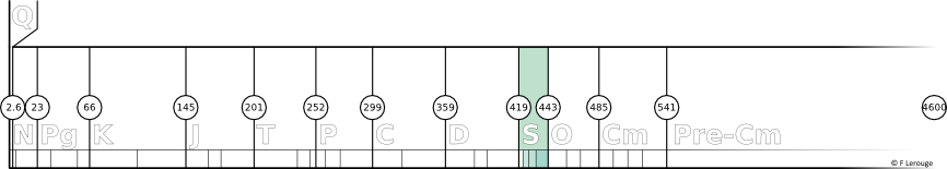 Het Siluur is een geologische periode die duurde van 443 tot 419 miljoen jaar geleden. Veel weekdieren, o.a. gastropoden, bryozoa, brachiopoden en kaakloze vissen bevolkten de Aarde. Eerste landplanten en landdieren.
