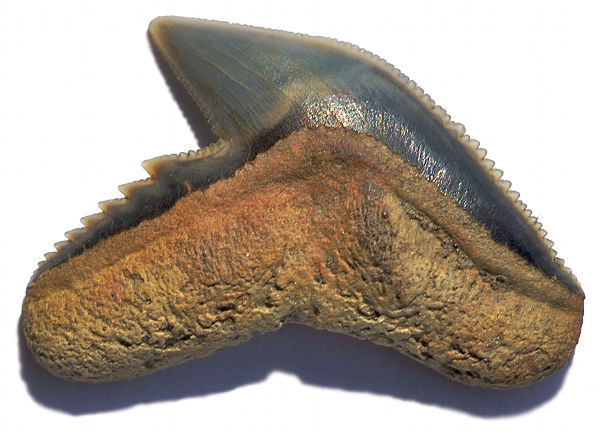 We hebben dit fossiel ergens in een bouwput gevonden. Het is mooi bewaard en heeft tal van specifieke kenmerken. Je denkt glazuur te zien en dat klopt wel, het is een tand. Als we met het fossiel naar iemand met meer kennis en ervaring stappen, kan een juist antwoord op de vraag alles zijn tussen 'haaientand' en 'Galeocerdo aduncus Agassiz 1843', soms met nog een variant en benoeming van de positie van de tand in de kaak erbij. In beide gevallen is het fossiel gedetermineerd, maar in het laatste geval is de determinatie veel nauwkeuriger.