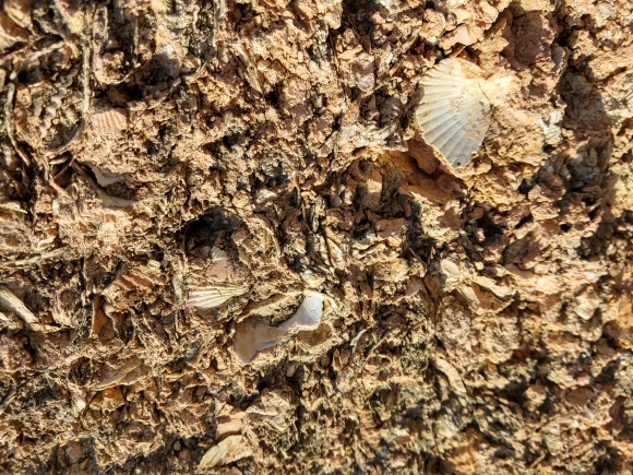 Zee-egels (o.a. Clypeaster), gastropoden en bivalven uit het Mioceen (onderdeel van het Neogeen tijdperk).