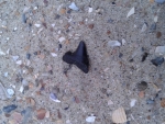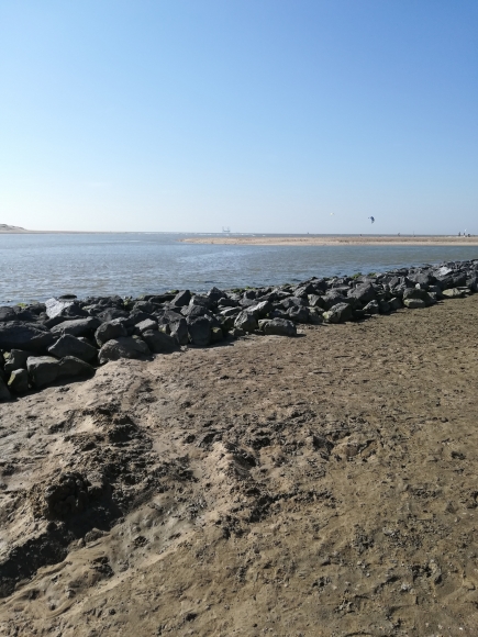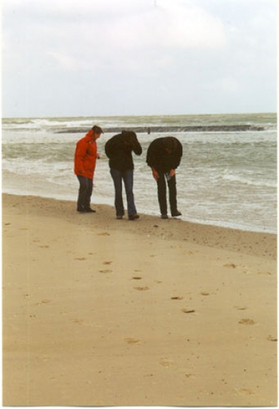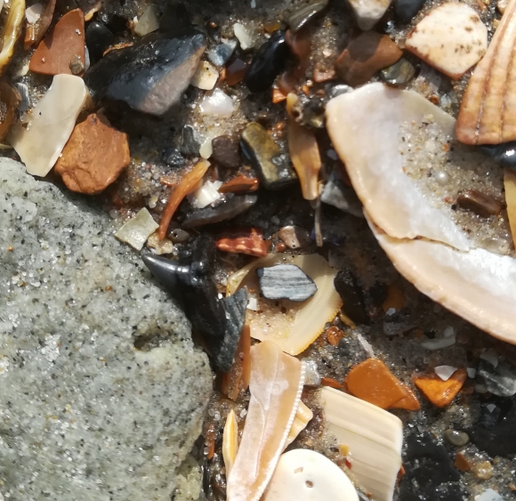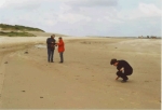 Net voor de vloedlijn hoef je niet zo diep te scheppen om een mooie laag (schelpen, fosforiet, en haaientanden) te vinden. Verder naar boven (richting duinen) zitten ook mooie lagen, maar dan graaf je al snel tot net onder je oksels.