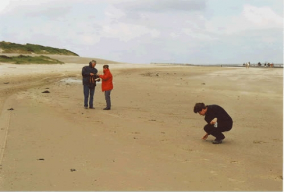 De meeste mensen zoeken gewoon op het strand bij eb. Sommige mensen graven echter kuilen hoger op het strand, en zeven vervolgen het materiaal door een niet al te grove zeef. Zie de Uitrusting pagina voor een handleiding voor het zelf bouwen van een zeef.