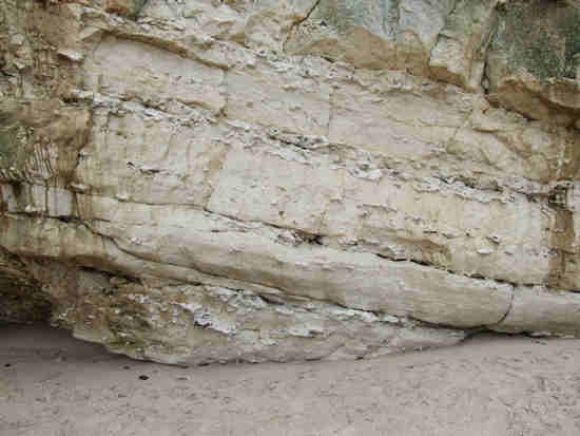 Tussen de zwerfstenen op het strand kunnen sporen fossielen van wormachtigen worden gevonden in zandsteen uit het Cambrium tijdperk. Deze stenen zijn in de ijstijden vanuit het noorden aangevoerd.