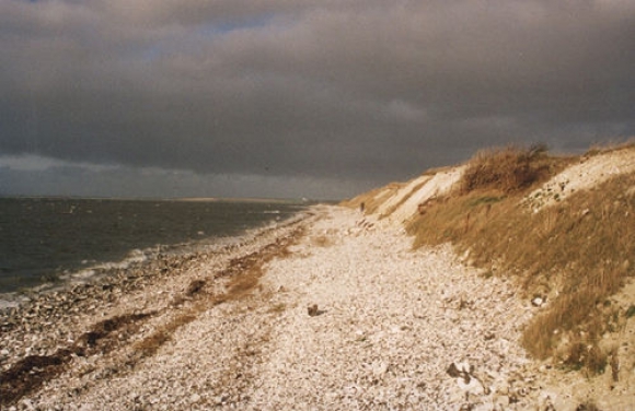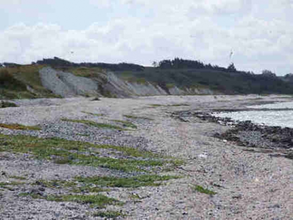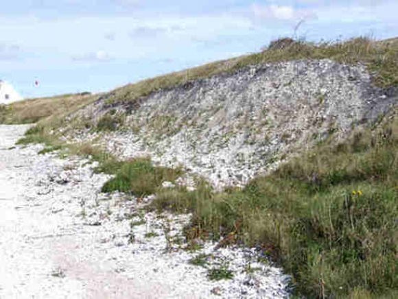 Hierbij werd een grote hoeveelheid bryozoënkalk uit het Onder Daniën (zone Tylocidaris oedumi, onderdeel van het Paleoceen) verplaatst, deze kalk werd gestort aan de westzijde van het kanaal tegen het strand. De storthopen kalven al door de golfslag en dit levert regelmatig relatief vers fossiel materiaal op. Let ook op plaatsen waar grondwerkzaamheden worden uitgevoerd.