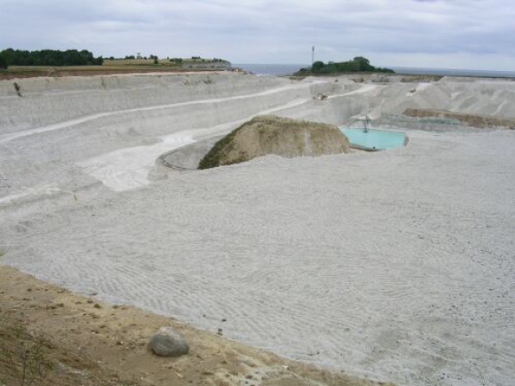 De groeve Sigerslev wordt door dezelfde firma geëxploiteerd als die in Fakse. Na werktijd is het geen probleem om zo de groeve in te wandelen vanaf boven.