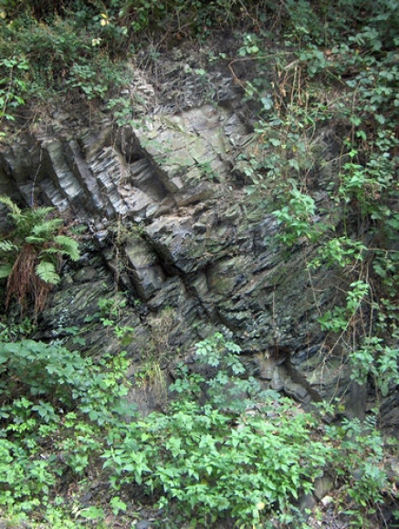 De holle weg is aan beide kanten bekleed met donkere, bijna zwarte schiefers / schalie. Deze schiefers zijn zeer hard en het is dan ook nodig om beitel en hamer mee te nemen om delen ervan los te kunnen kappen. Na wat wrikken levert deze laag echter mooie graptolieten op. Ze werden afgezet in diep water, vandaar de donkere schiefer. De witbeige graptolieten steken daar vaak mooi tegen af.