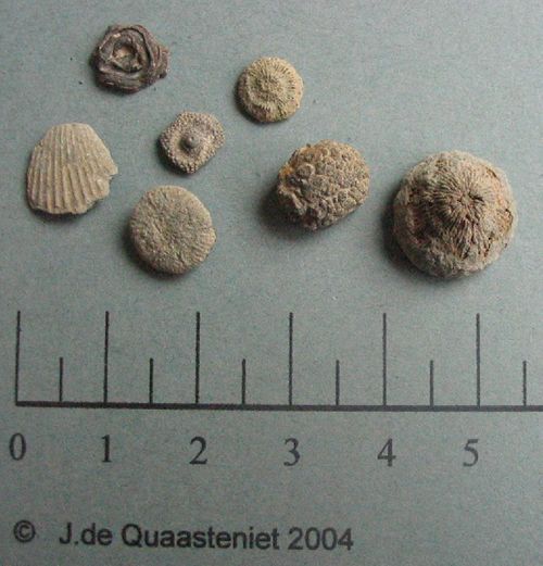 Koraaltjes, een serpulide en een zee-egelfragment © Foto: J. de Quaasteniet