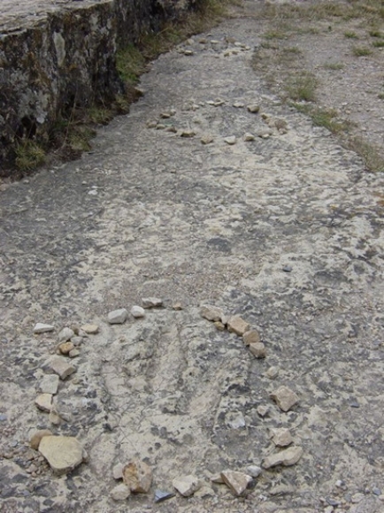 Dit weggetje rijden we uit totdat we op een onverhard gedeelte komen. We parkeren de auto bij een boerenschuur en vervolgen wandelend(afhankelijk van het tempo ca. een half uur tot aan vindplaats.) onze weg die net voorbij het punt waar we onze auto hebben geparkeerd rechtsaf buigt en dan licht hellend naar beneden loopt. Beneden aangekomen maakt het pad, wat steeds smaller wordt, een scherpe bocht naar links en loopt hier dan tussen het struikgewas door wat enigszins beschutting geeft tegen de zon. Het struikgewas houdt echter na een ca. 100 meter op en het pad gaat dan verder in de open lucht. Het pad stijgt nog steeds gestaag en halverwege de op dat moment al in het zicht liggende scherpe bocht verder naar boven, kunnen we het pad afsnijden door een smal wandelpad te nemen wat direct naar het pad terug leidt maar dan hoger. Het is wel opletten: de ondergrond is erg los en het padje loopt behoorlijk steil en vallen is dus niet ondenkbaar. Bij het kruisen van het oorspronkelijke pad deze rechtsaf vervolgen. Boven aangekomen, zien we een kale heuvel: "Le Puecheral"