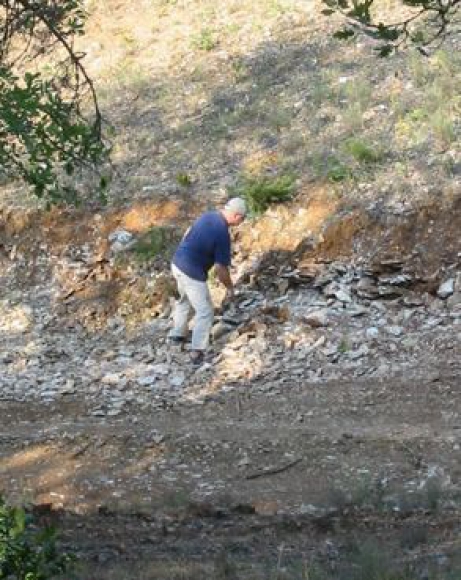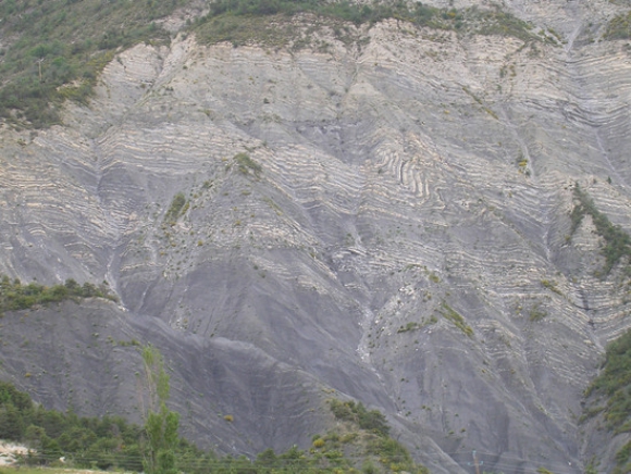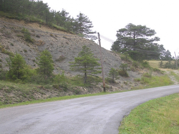 - 1. Hyeges Ligt ten noordwesten van St. Andre les Alpes. Aan de rechterkant van de weg D419 naar Hyeges zijn mergelafzettingen ontsloten waarin belemnieten en ammonieten gevonden kunnen worden. Ten noorden van het dorpje zijn ook nog hellingen ontsloten, maar hier heb ik niet gezocht. Deze hellingen zijn prachtig geplooid (zie foto).