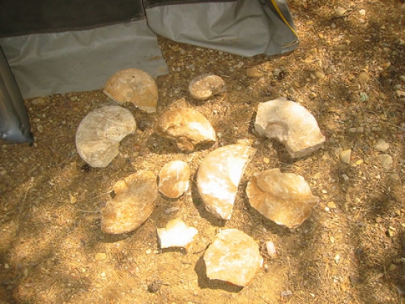 De camping wordt momenteel opgeknapt, en daardoor liggen soms kalksteenlagen ontbloot aan de oppervlakte en kan je makkelijk fossielen vinden. Er zijn fossielen te vinden direct aan de oppervlakte, maar ook na wat hak- en breekwerk in de kalksteenlagen zelf. Er zijn diverse ammonieten gevonden waaronder ééntje van wel 40cm groot en vrijwel compleet. Hier ben ik zelf niet geweest.