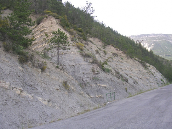 - 5. Angles Op de weg van Pont St. Julien naar Angles zijn langs de weg hele laagpakketten ontsloten. Dit is de typelocatie van het Barremien. Hierin kunnen onder andere ammonieten gevonden worden.