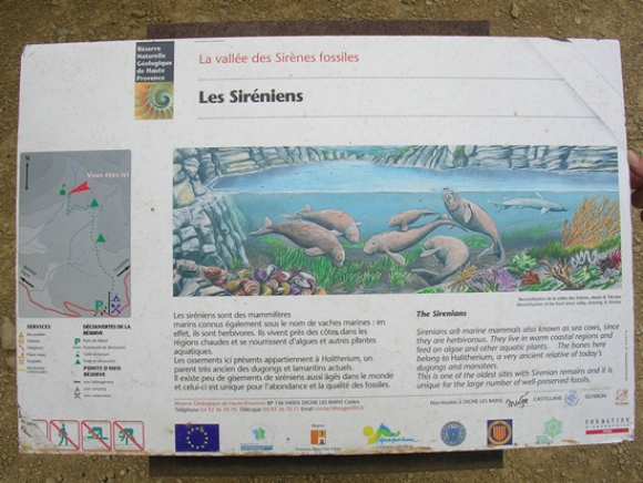 - 7. Col des Leques (ten noordwesten van Castellane) Hier is een opgraving van sirenen (zeekoeien) te zien die stammen uit het Eoceen, en 40 miljoen jaar oud zijn. In een bepaalde laag is een opeenhoping van skeletten van zeekoeien ontstaan. De wand is afgedekt met glas, maar is prima te zien. Vanaf de Col is het ongeveer 30 minuten lopen. Het pad begint naast de camping. Zoeken is hier verboden! In het Musée Sirenes & Fossiles in Castellane kun je meer over deze opgraving te weten komen.