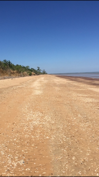 De locatie is een afgelegen strand. De fossielen van deze locatie dateren hoofdzaklijk uit het (vroeg) Holoceen. Ze kunnen gevonden worden aan de laagwaterlijn, waar de getijden het zand weggespoeld hebben. Pas op, deze kustlijn is bewoond door krokodillen, haaien en kubuskwallen (Box Jellyfish). Zwemmen is dus ten zeerste afgeraden.