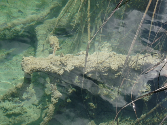 De Plitvice meren in Kroatië zijn ontstaan doordat koolzuurrijk water hier aan de oppervlakte komt. Dooradt het koolzuur aan het water ontsnapt aan de oppervlakte kan het veel minder opgeloste kalk vasthouden. Het kalk wordt vervolgens afgezet als travertijn.