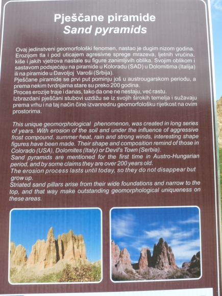 De indrukwekkende natuurlijke zandsteen torens bij Pješčane zijn ontstaan door erosie van wind, water en vorstwerking. De erosie van het gebied gaat nog steeds door. De bovenkant van de torens bestaan uit hardere conglomeraat zodat het onderliggende zandsteen wordt beschermd.