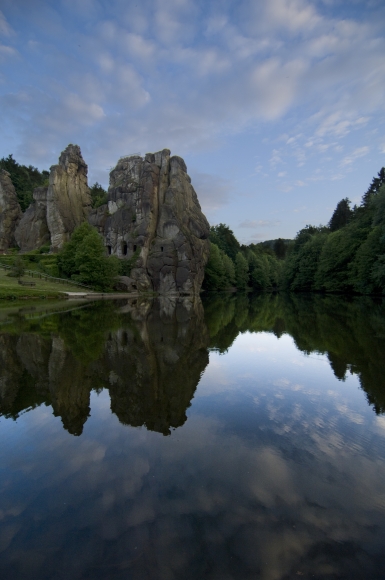De Externsteine liggen in het Teutoburger Wald in het westen van Duitsland, vlakbij Horn-Bad Meinberg.